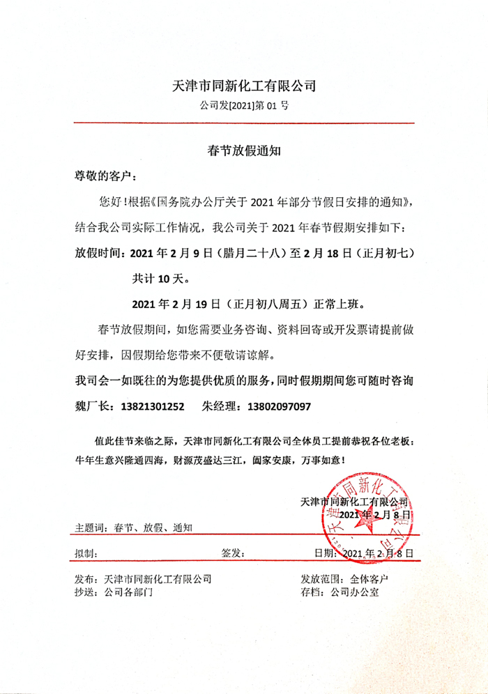 春節放假通知